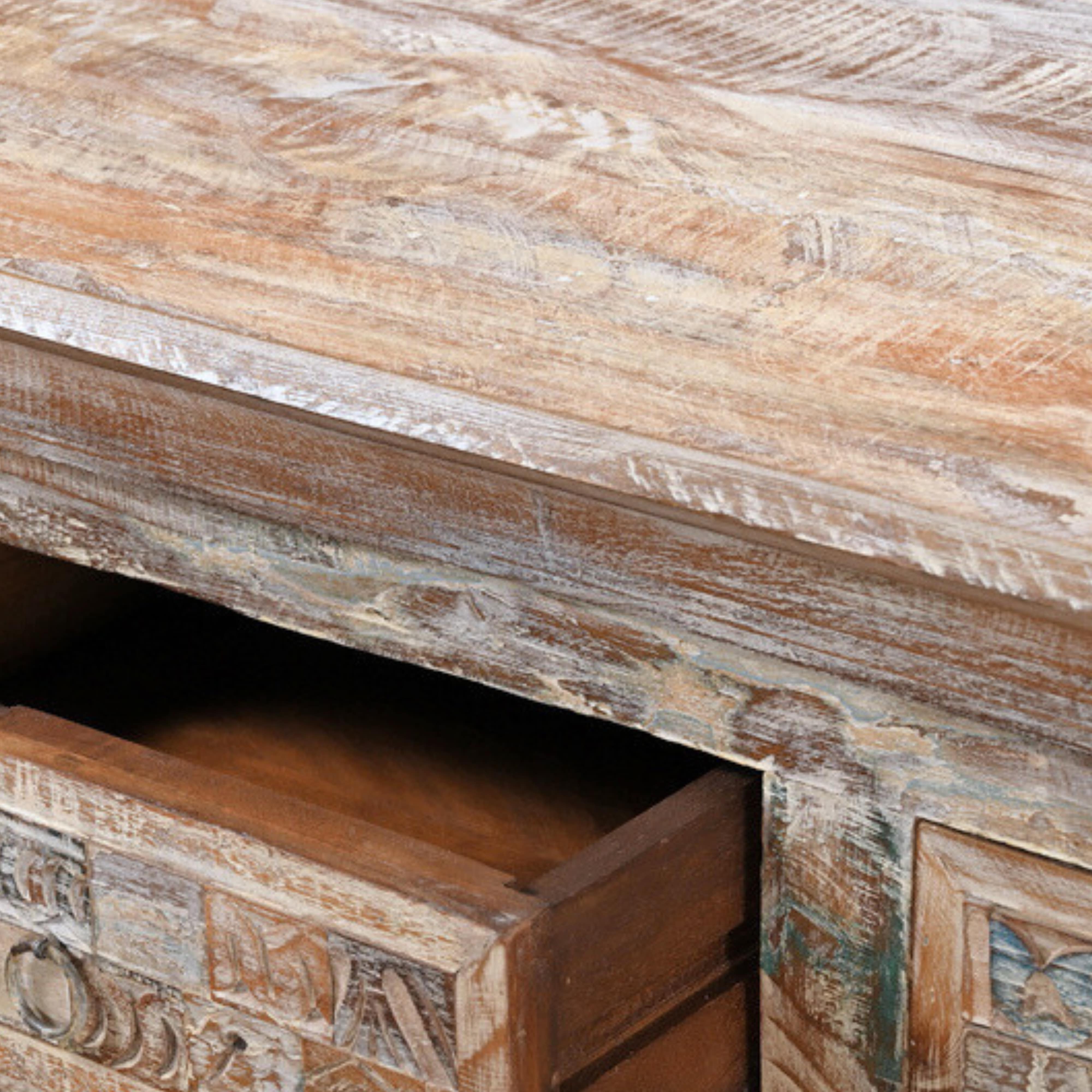 Bahut bois recyclé - 3 portes 3 tiroirs - 130 x 40 x h90cm - Buffet ethnique en bois LILA