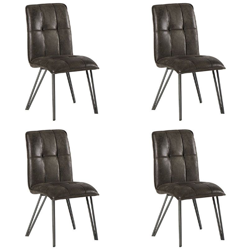Lot de 4 chaises grises en microfibres - Pieds en fer - 47 x 66 x 92cm. Chaise Casita CHAVENMICGRI. PAR 4.