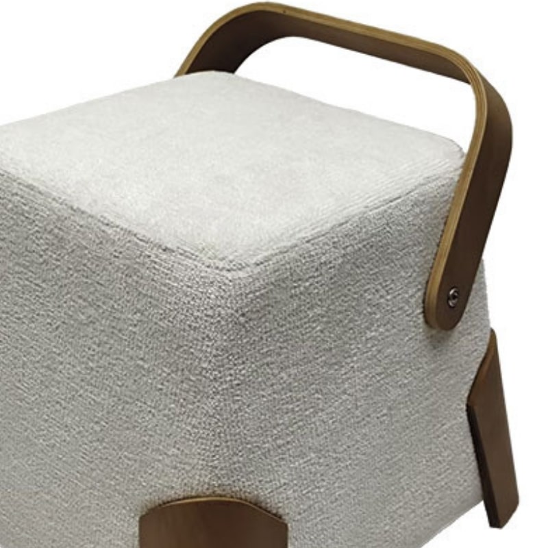 Les poignées et le piètement en hévéa massif cintré ajoutent une dimension esthétique et pratique, facilitant le déplacement du pouf tout en renforçant sa stabilité. Avec des dimensions de 46 x 46 x 46 cm et un poids de 4,5 kg, ce pouf est facile à déplacer et à intégrer dans différents agencements de votre salon.