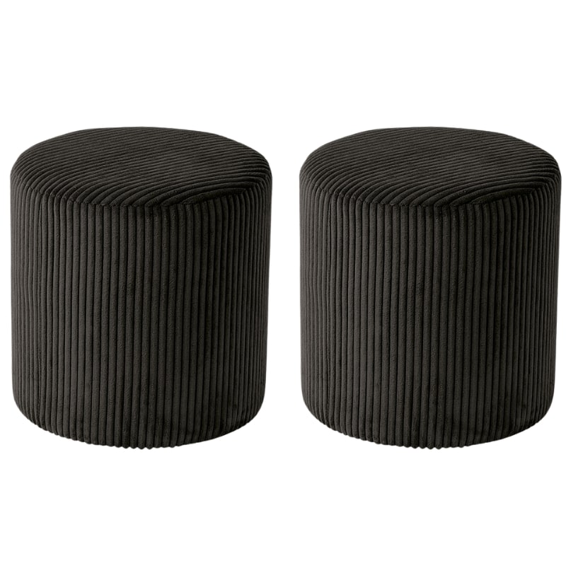 Optez pour une assise d'appoint à petit prix avec ce pouf rond en velours côtelé noir ! Il dispose d'une assise en mousse qui vous garantira confort et qualité d'assise pour de nombreuses années. Mais vous serez également charmé par son design originl qui complète habilement ce pouf et en épouse les courbes modernes et design.