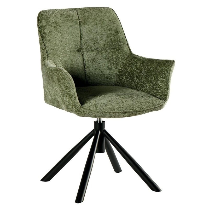 Chaise tissu vert avec accoudoirs - Pieds rotatif en fer - 50 x 62 x h87cm. Chaise tournante tissu Casita EWING. VENDU PAR 2.