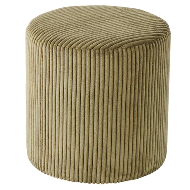 Pouf rond velours côtelé vert kaki - Ø35 x h36cm - Pouf rond Casita SNAW