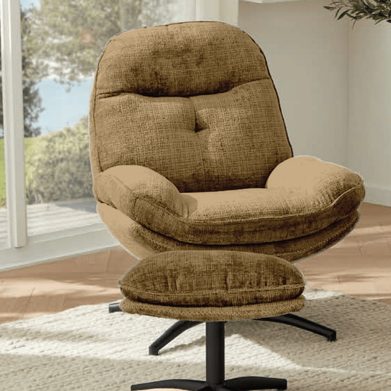 Fauteuil inclinable et rotatif avec repose-pieds moutarde en tissu - Pieds en métal - 99 x 78 x h96cm - Ensemble vintage Casita BRANSON