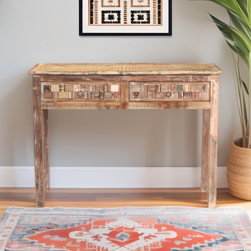 Une console en bois recyclé coloré ethnique de style pour votre maison !