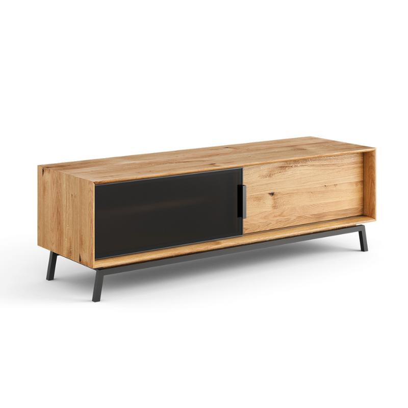 Découvrez le meuble tv portes coulissantes ADAM au design orignal et moderne que vous ne trouverez nulle part ailleurs. Il a la particularité d'avoir 2 portes coulissantes, une en verre Decormat graphite et l'autre en bois massif offrant un style contemporain à votre salon. Derrière ses belles portes coulissantes bois en massif vous trouverez 2 étagères en haut ainsi qu'une longue étagère en bas vous offrant large espace de rangement pour votre box, console et autres objets. Fabriqué par des artisans européens avec du bois massif de chêne, ce meuble tv portes coulissantes est le fruit d'un savoir-faire artisanal à partir des matières de grande qualité pour vous offrir une durabilité exceptionnelle. Le bois massif est une matière noble et naturelle qui offre de nombreux avantages : ils sont plus résistantes au temps et à l'usure, ils sont écologiques car facilement recyclables.
