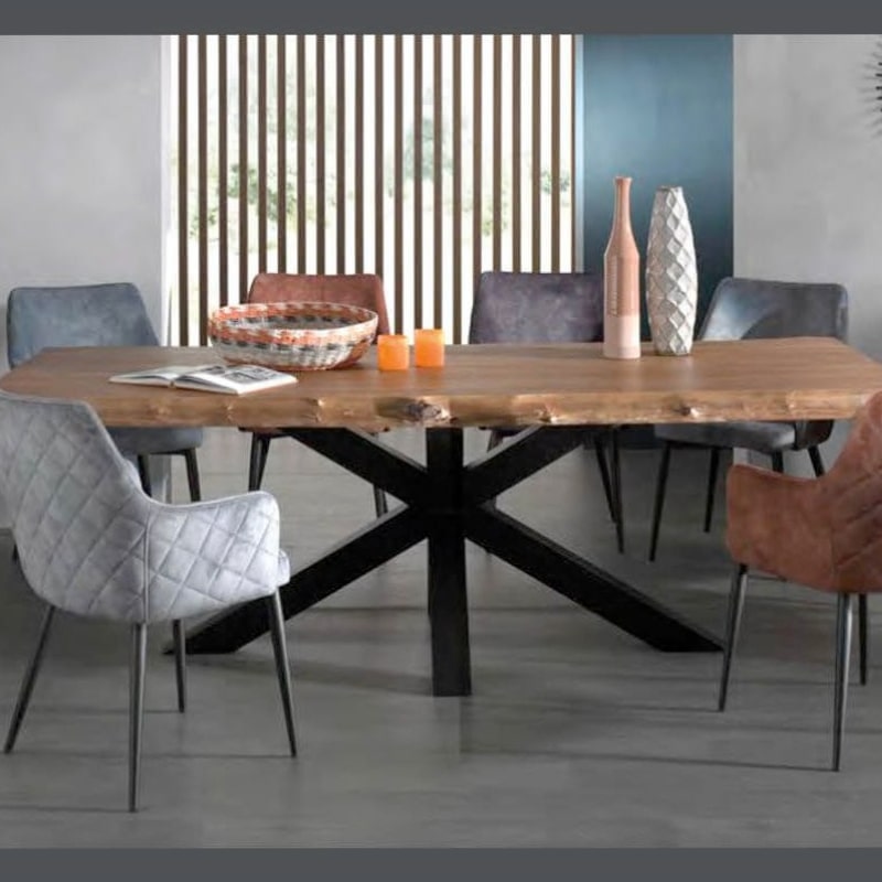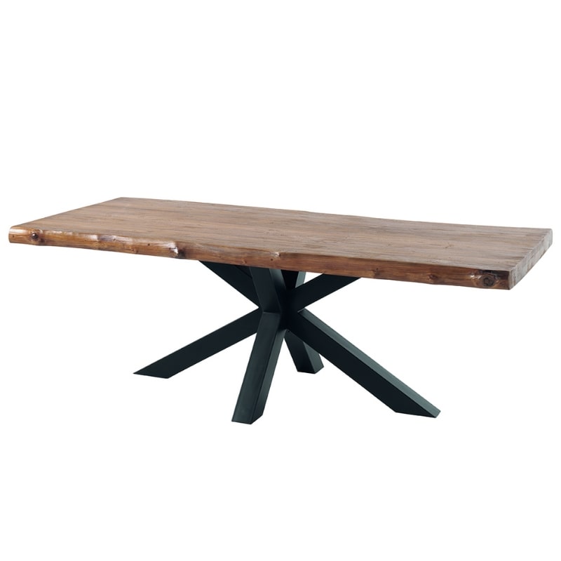 Table bois massif en teck massif avec bord naturels et pied central en métal noir - 280 x ~110 x h78cm - Table à manger Casita Valley VALTA 280.